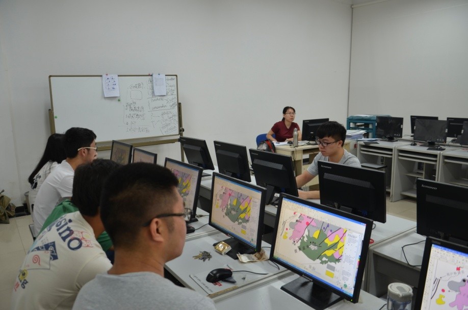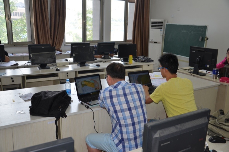 学生在机房进行地球化学数据处理实习
