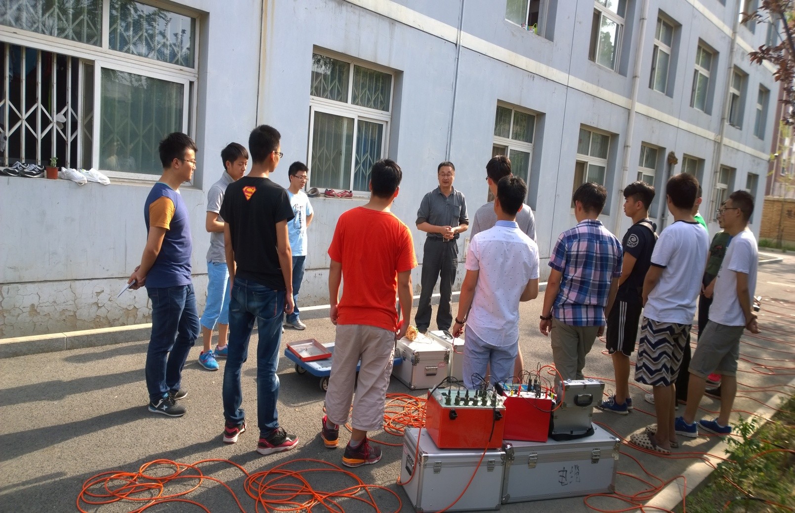 沈军教授给学生讲解高密度电法探测技术